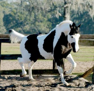 Srsť na celom tele, nohách, hrive a chvoste má čiernu farbu.